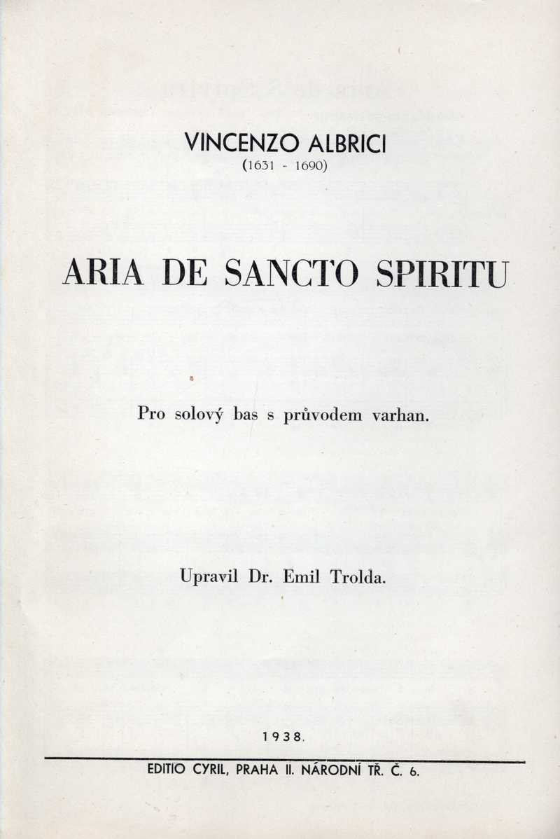 Aria de Sancto Spiritu (titulní strana) Ročník: 1938; strana: 12, příloha: 3 Přepis ke stažení ve formátu MS Word [0 kB]