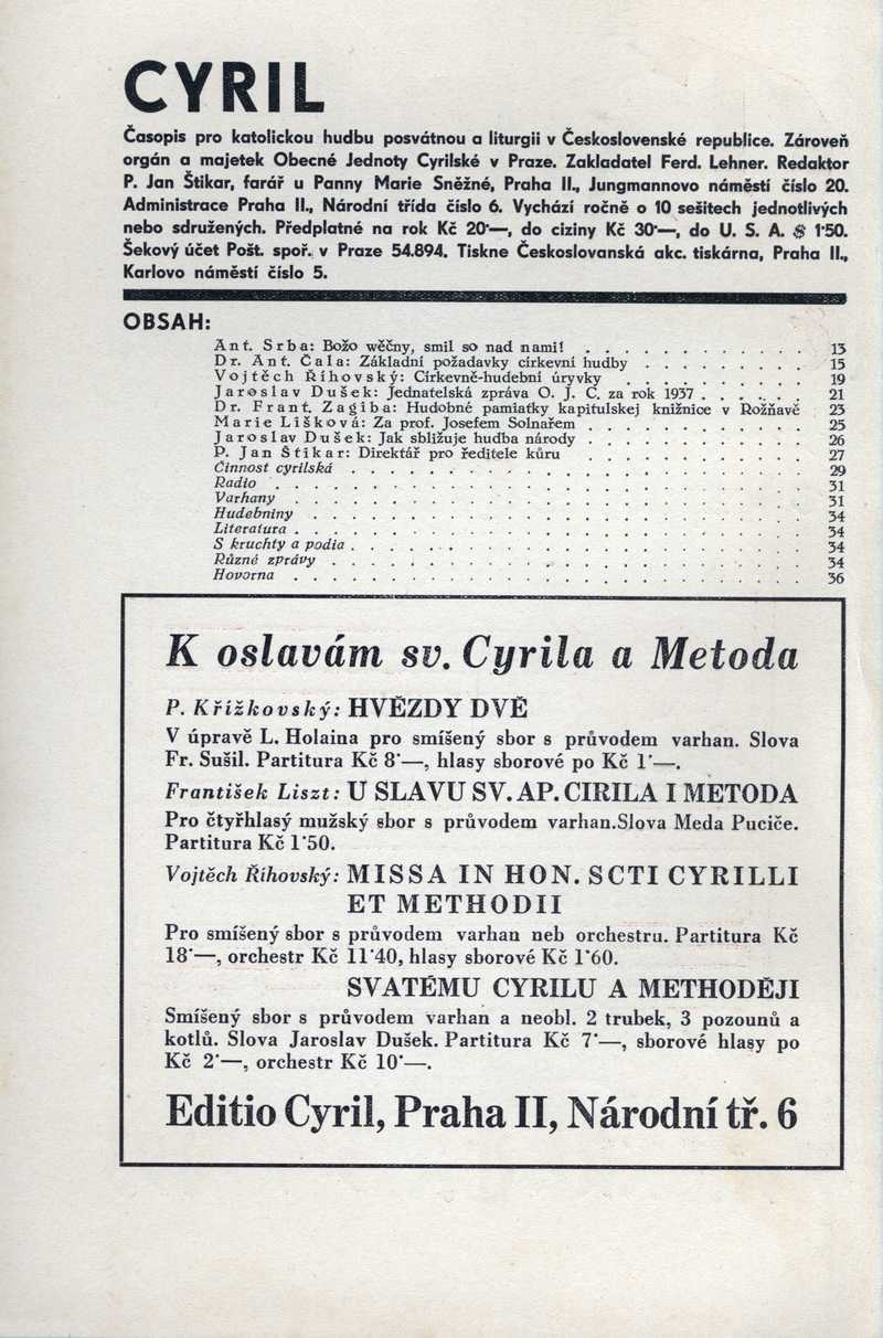 K oslavám sv. Cyrila a Metoda Ročník: 1938; strana: 12, příloha: 7 Přepis ke stažení ve formátu MS Word [0 kB]