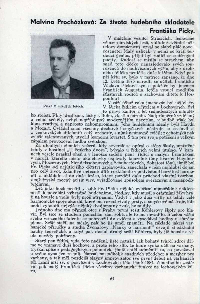 Ze života hudebního skladatele Františka Picky Ročník: 1938; strana: 64, Přepis ke stažení ve formátu MS Word [0 kB]