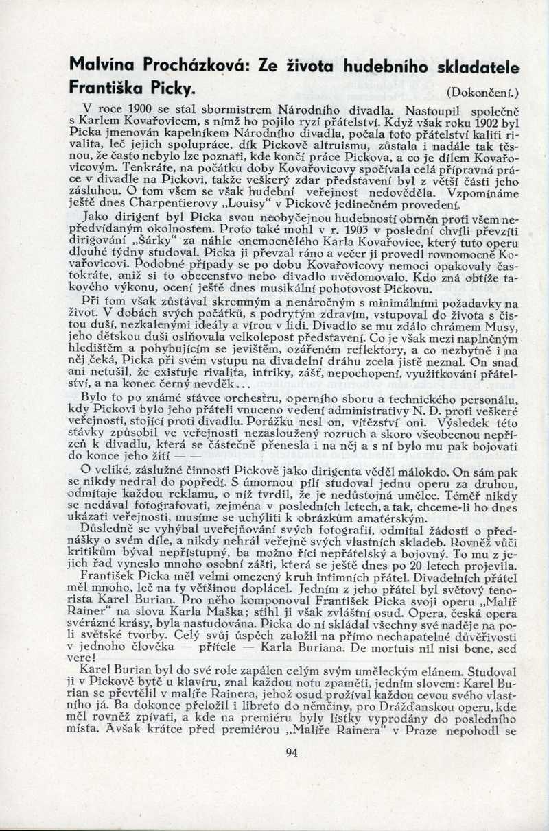 Ze života hudebního skladatele Františka Picky Ročník: 1938; strana: 94, Přepis ke stažení ve formátu MS Word [0 kB]