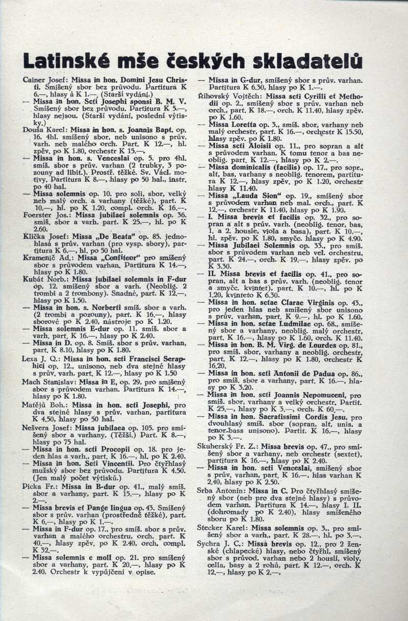 Latinské mše českých skladatelů Ročník: 1940; strana: 28, příloha: 1 Přepis ke stažení ve formátu MS Word [0 kB]