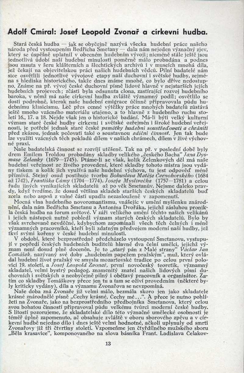 Josef Leopold Zvonař a církevní hudba Ročník: 1941; strana: 13, Přepis ke stažení ve formátu MS Word [0 kB]