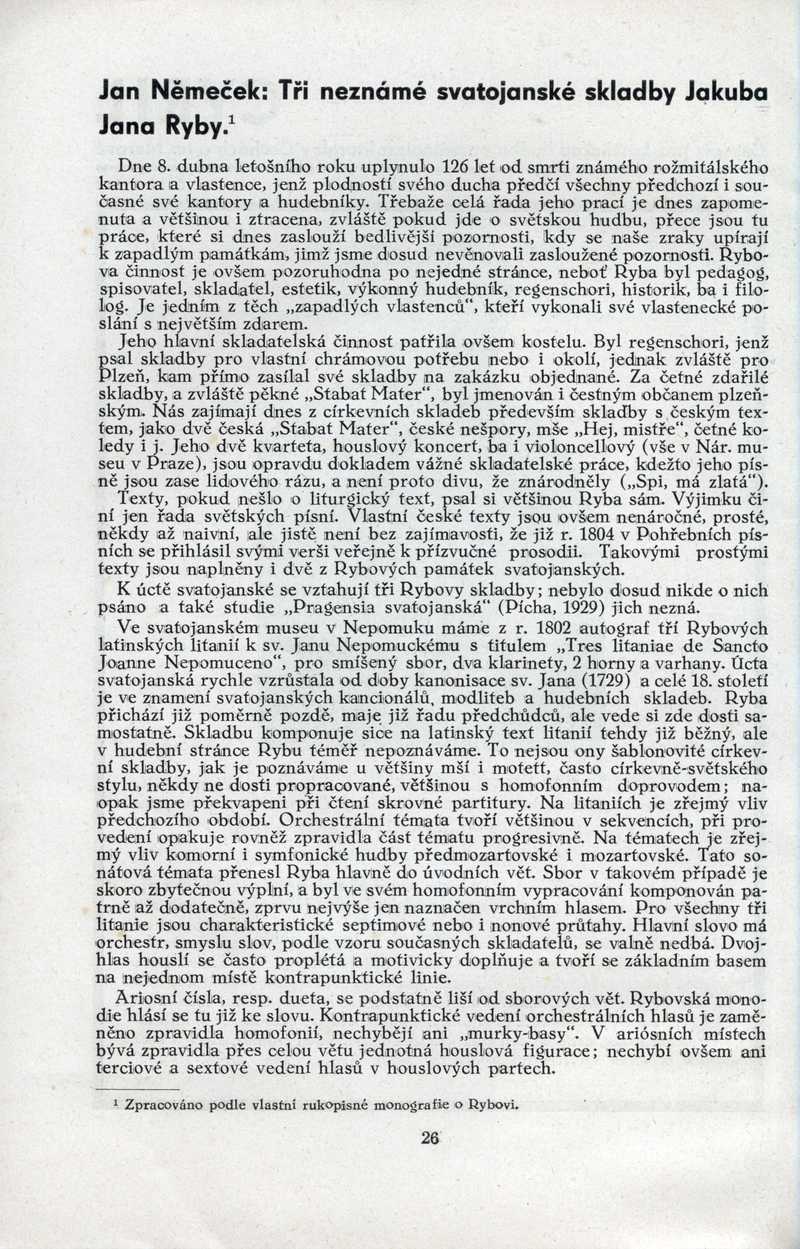 Tři neznámé svatojanské skladby Jakuba Jana Ryby Ročník: 1941; strana: 26, Přepis ke stažení ve formátu MS Word [0 kB]
