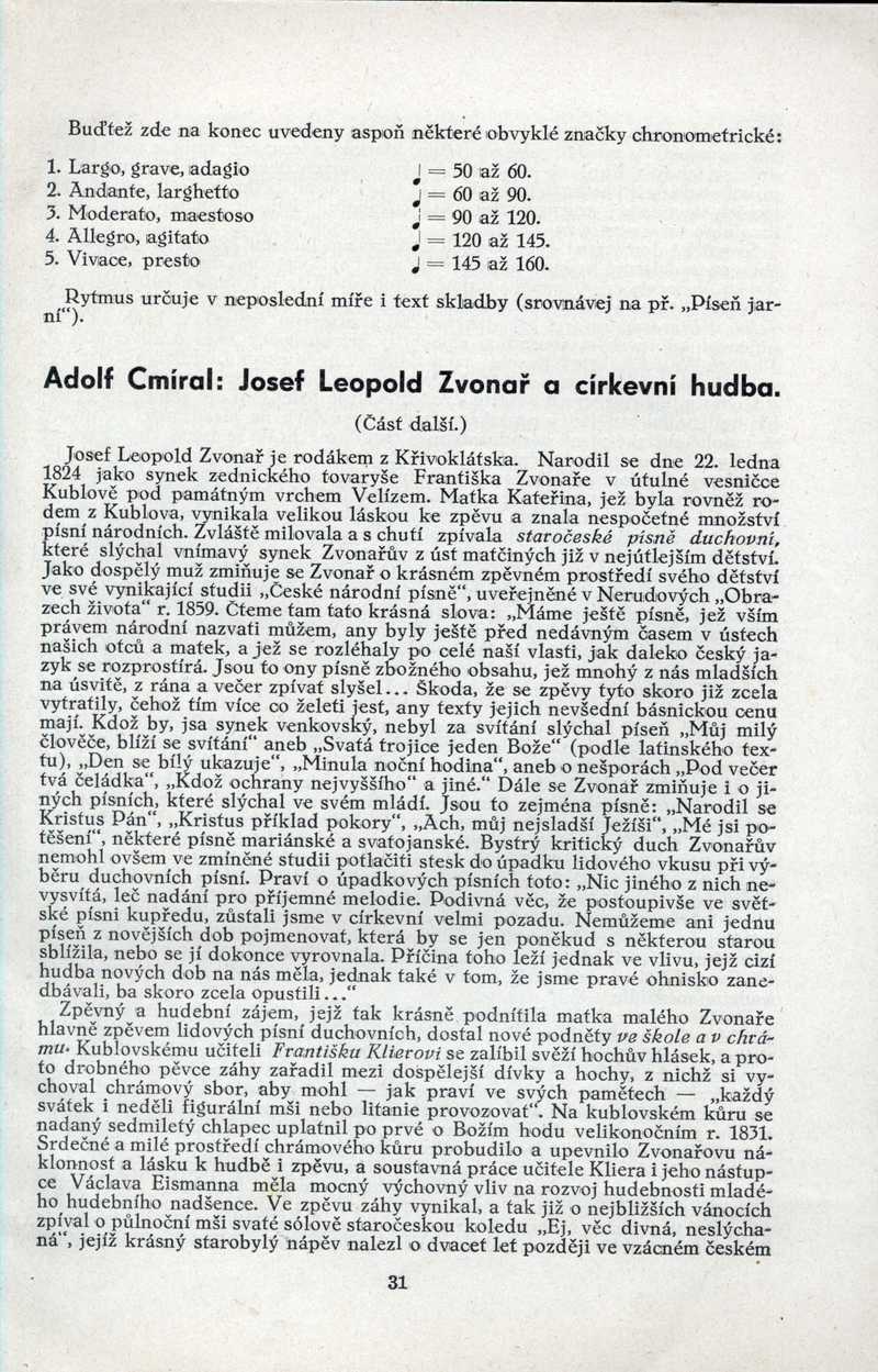 Josef Leopold Zvonař a církevní hudba Ročník: 1941; strana: 31, Přepis ke stažení ve formátu MS Word [0 kB]