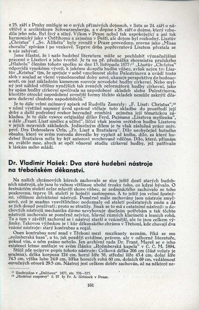 Dva staré hudební nástroje na třeboňském děkanství Ročník: 1941; strana: 101, Přepis ke stažení ve formátu MS Word [0 kB]