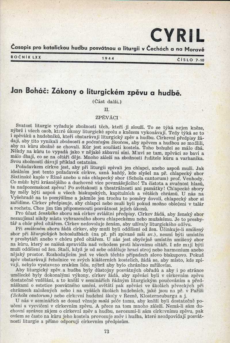 Zakony o liturgickém zpěvu a hudbě Ročník: 1944; strana: 73, Přepis ke stažení ve formátu MS Word [0 kB]
