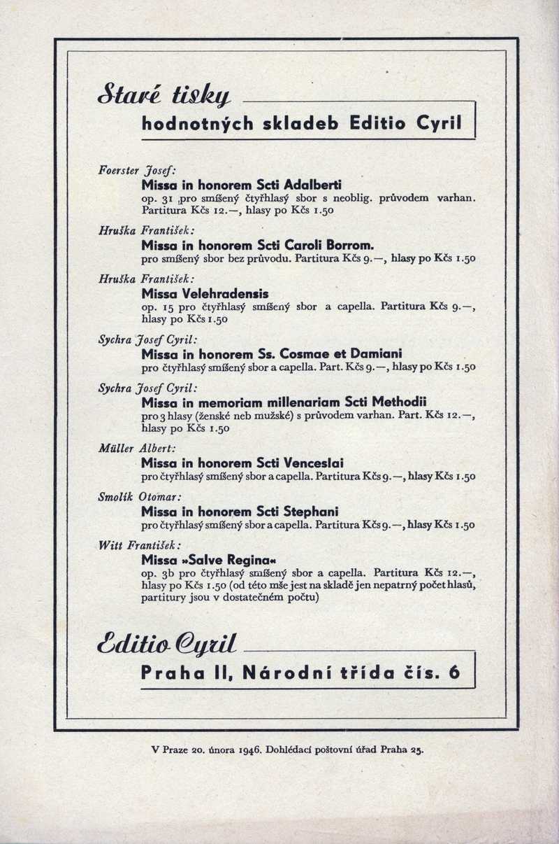 Staré tisky hodnotných skladeb Editio Cyril Ročník: 1946; strana: 24, příloha: 2 Přepis ke stažení ve formátu MS Word [0 kB]