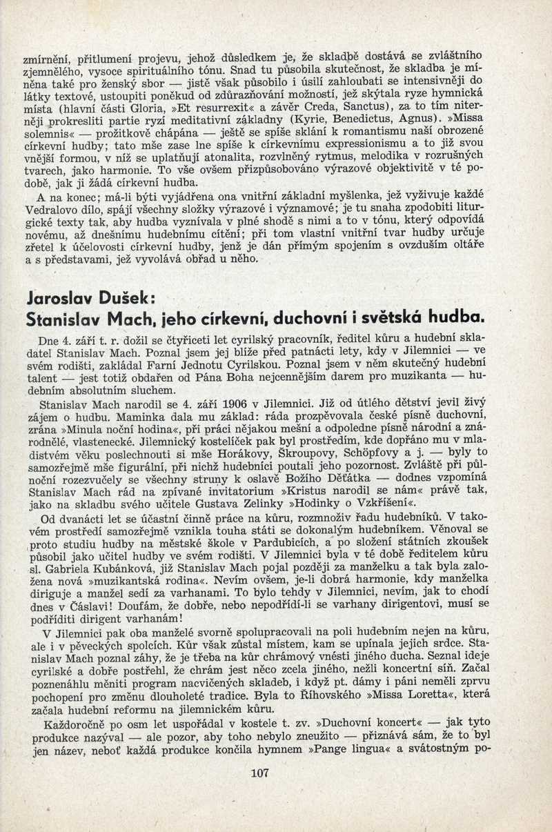 Stanislav Mach, jeho církevní, duchovní i světská hudba Ročník: 1946; strana: 107, Přepis ke stažení ve formátu MS Word [0 kB]