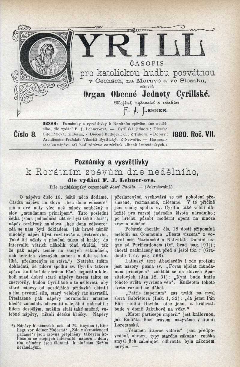 Poznámky a vysvětlivky k Rorátním zpěvům dne nedělního, dle vydání F. J. Lehner-ova Ročník: 1880; strana: 57, Přepis ke stažení ve formátu MS Word [0 kB]