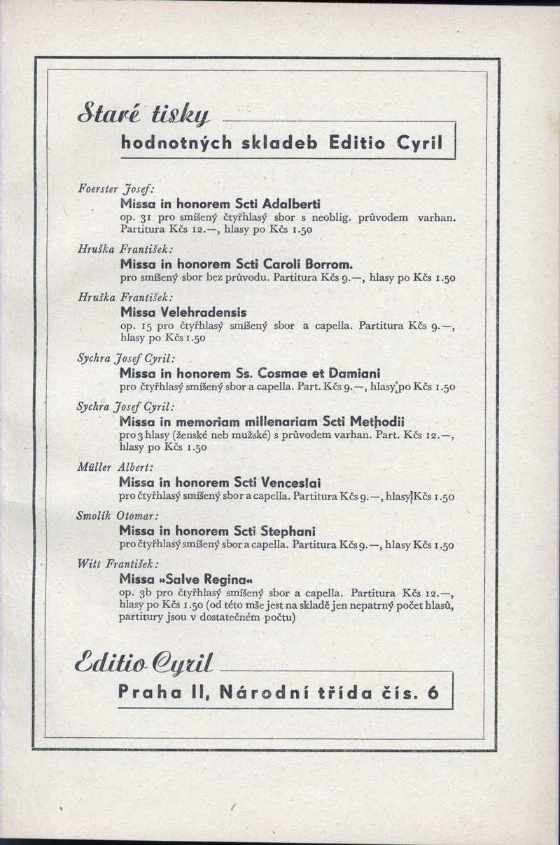 Staré tisky hodnotných skladeb Editio Cyril Ročník: 1947; strana: 24, příloha: 1 Přepis ke stažení ve formátu MS Word [0 kB]