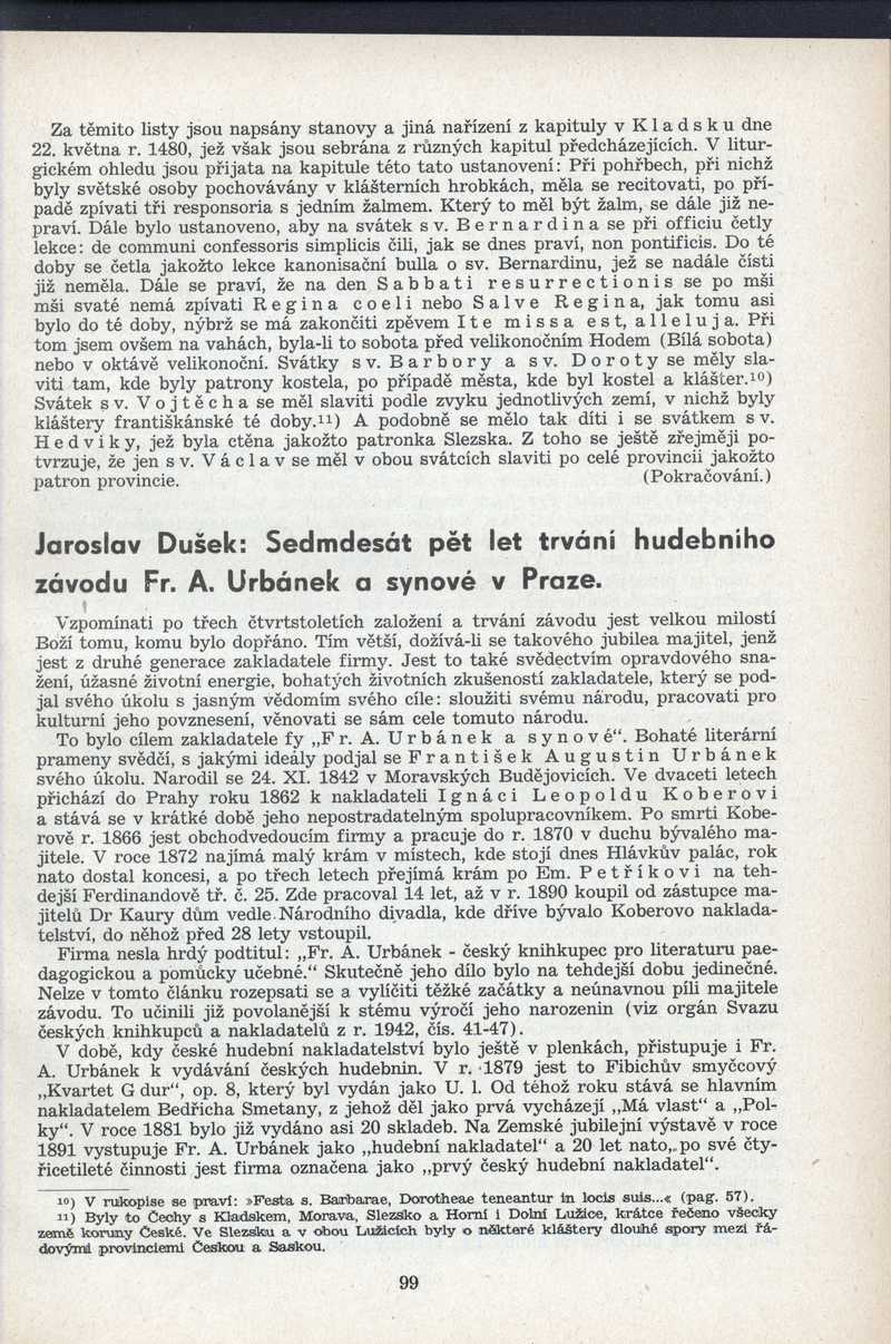75 let trvání hudebního závodu Fr. A. Urbánek a synové v Praze Ročník: 1947; strana: 99, Přepis ke stažení ve formátu MS Word [0 kB]