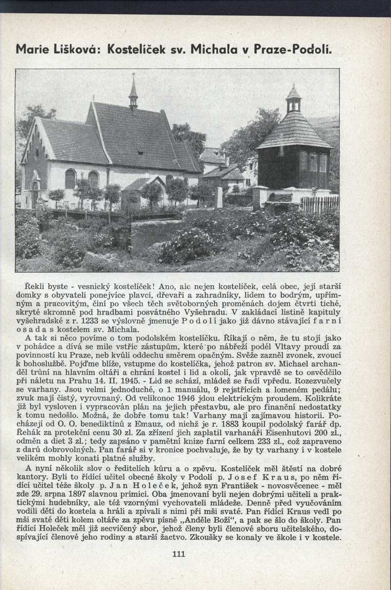 Kostelíček sv. Michala v Praze-Podolí Ročník: 1947; strana: 111, Přepis ke stažení ve formátu MS Word [0 kB]