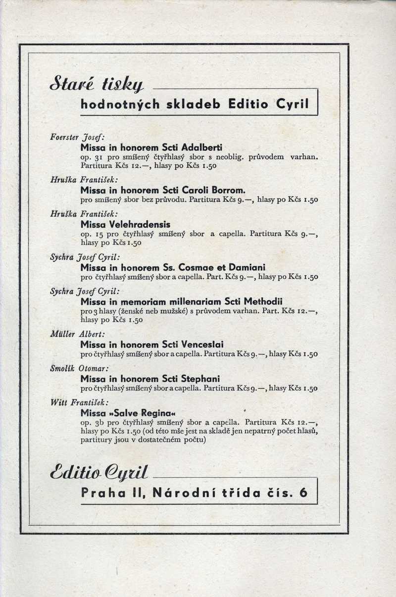 Staré tisky hodnotných skladeb Editio Cyril Ročník: 1948; strana: 24, příloha: 1 Přepis ke stažení ve formátu MS Word [0 kB]