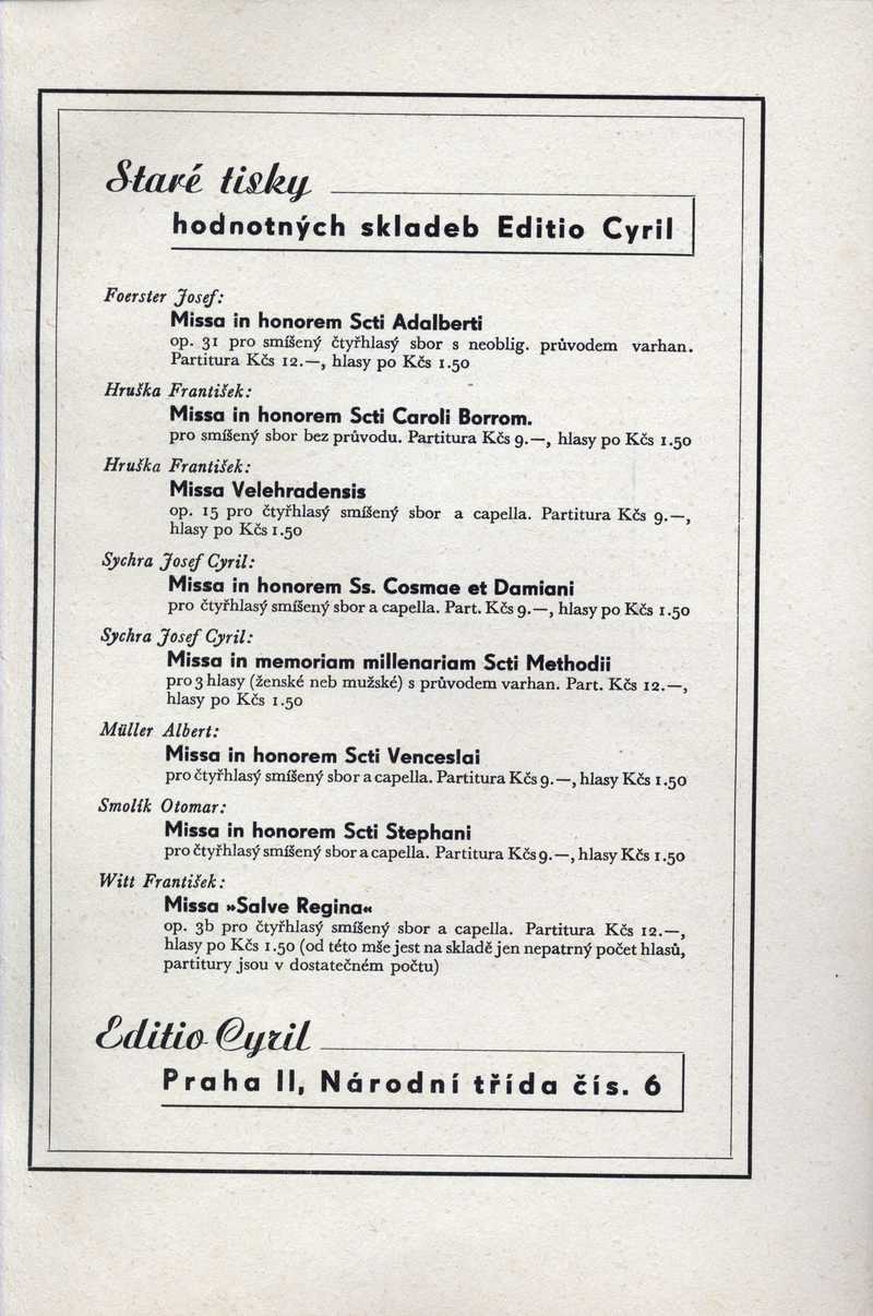 Staré tisky hodnotných skladeb Editio Cyril Ročník: 1948; strana: 72, příloha: 1 Přepis ke stažení ve formátu MS Word [0 kB]