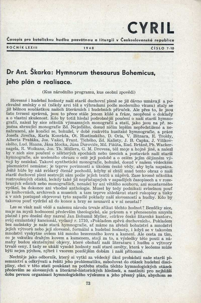 Hymnorum thesaurus Bohemicus, jeho plán a realisace Ročník: 1948; strana: 73, Přepis ke stažení ve formátu MS Word [0 kB]